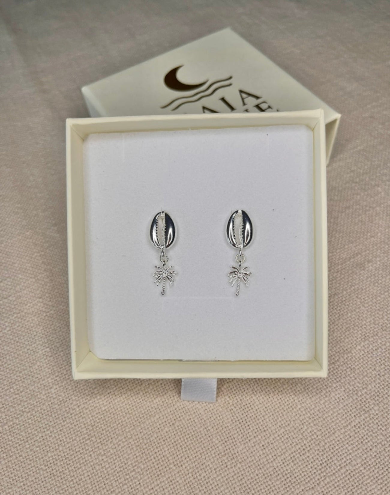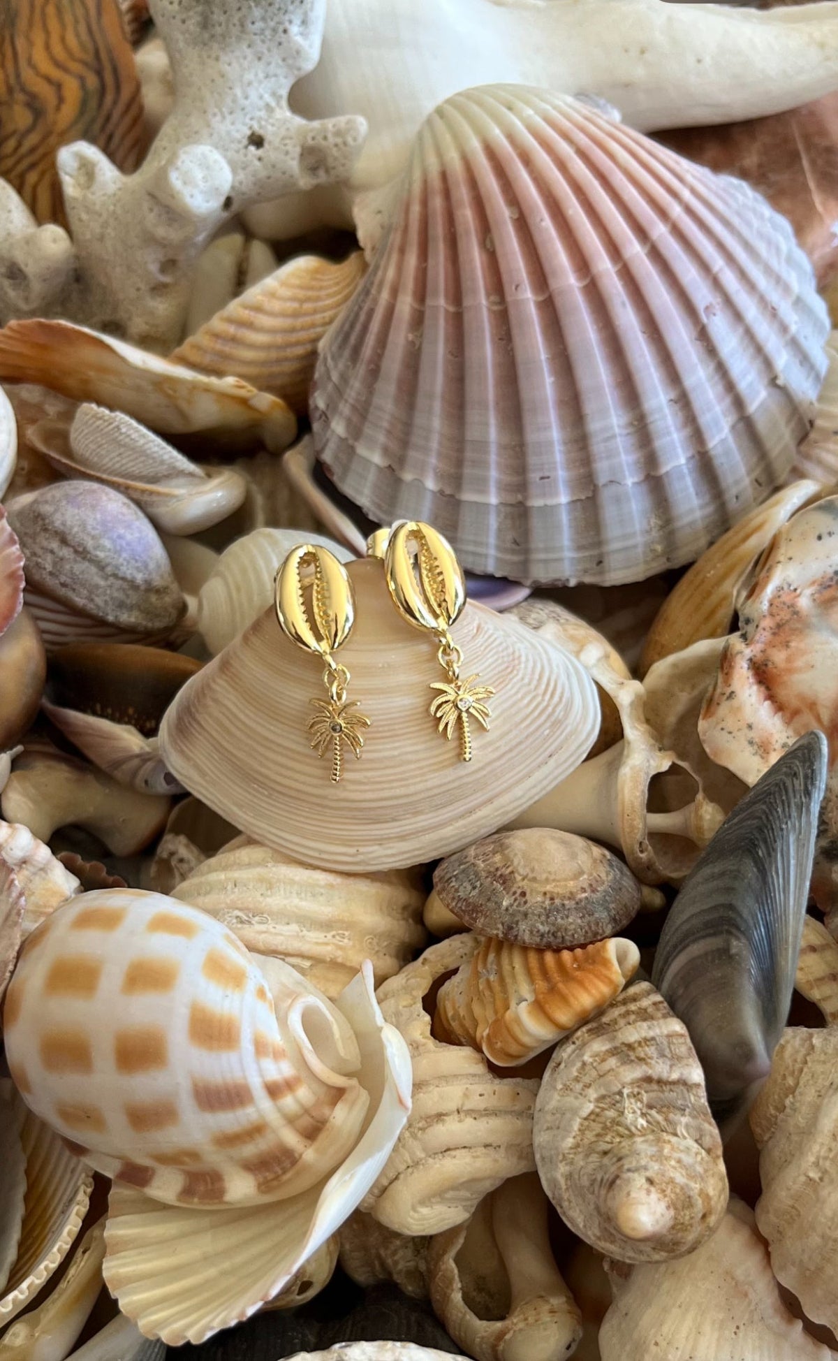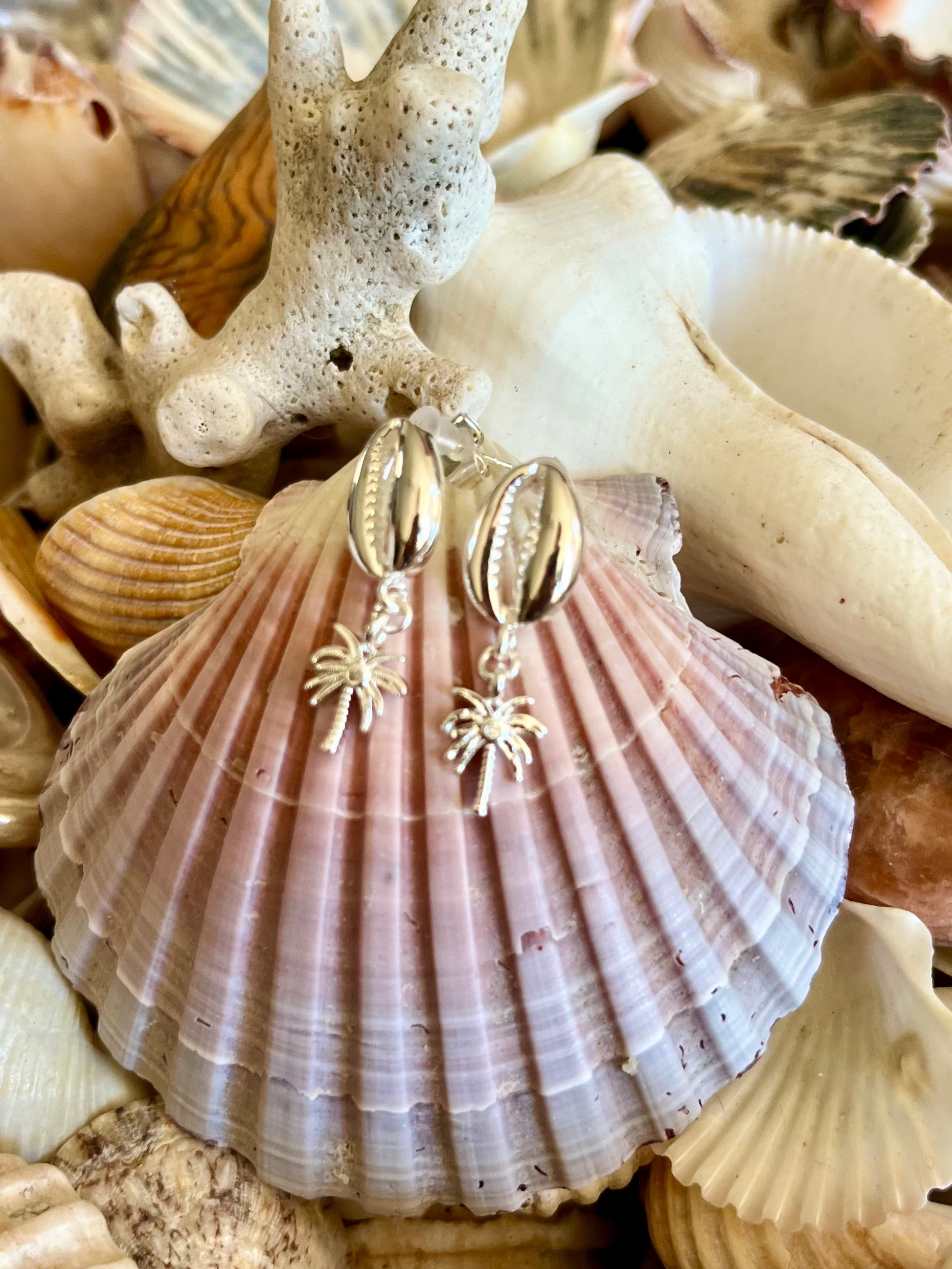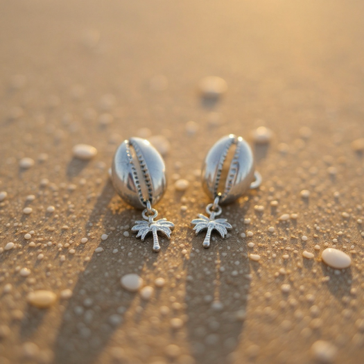 Coastal Palm Earrings embody island serenity. The silver Cowrie Shells and palm tree charms capturing the calm rhythm of sun, sea, and gentle ocean breezes.