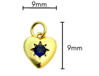 - 18k Gold Plated 9x9 Heart charm with a Sapphire Cubic Zirconia in a starburst setting.